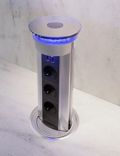 The upper light band makes it an elegant furnishing accessory, ideal for kitchen worktops, thanks to the IP54 water protection.